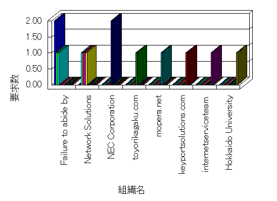 組織ユーザーにインターネット接続を提供する、商用または非営利団体、学術・行政機関などの、インターネット ドメイン で識別される団体や組織です。Microsoft Site Server Analysis は同じ組織に登録されたすべてのドメインを 1 つの組織としてグループ化します。ドメインがデータベースで使用できない場合は、1 つのインターネット ドメインが 1 つの組織を識別するのに使用されます。