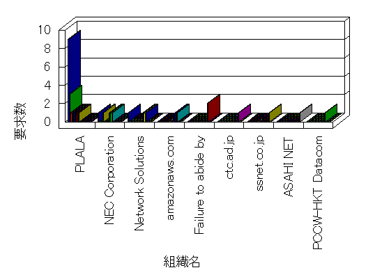 参照組織のサイトには、このサイトにリンクするページがあります。グラフでは、このサイトへのアクセス数に基づいた、上位 10 組織を示します。