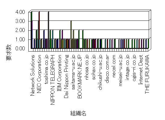 組織ユーザーにインターネット接続を提供する、商用または非営利団体、学術・行政機関などの、インターネット ドメイン で識別される団体や組織です。Microsoft Site Server Analysis は同じ組織に登録されたすべてのドメインを 1 つの組織としてグループ化します。ドメインがデータベースで使用できない場合は、1 つのインターネット ドメインが 1 つの組織を識別するのに使用されます。