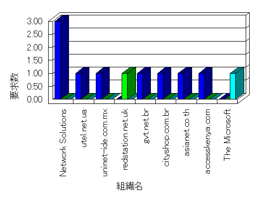 組織ユーザーにインターネット接続を提供する、商用または非営利団体、学術・行政機関などの、インターネット ドメイン で識別される団体や組織です。Microsoft Site Server Analysis は同じ組織に登録されたすべてのドメインを 1 つの組織としてグループ化します。ドメインがデータベースで使用できない場合は、1 つのインターネット ドメインが 1 つの組織を識別するのに使用されます。