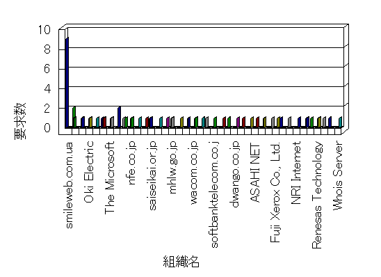参照組織のサイトには、このサイトにリンクするページがあります。グラフでは、このサイトへのアクセス数に基づいた、上位 10 組織を示します。