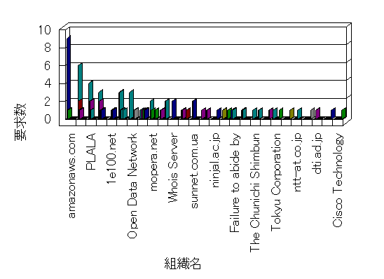 参照組織のサイトには、このサイトにリンクするページがあります。グラフでは、このサイトへのアクセス数に基づいた、上位 10 組織を示します。