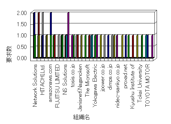 組織ユーザーにインターネット接続を提供する、商用または非営利団体、学術・行政機関などの、インターネット ドメイン で識別される団体や組織です。Microsoft Site Server Analysis は同じ組織に登録されたすべてのドメインを 1 つの組織としてグループ化します。ドメインがデータベースで使用できない場合は、1 つのインターネット ドメインが 1 つの組織を識別するのに使用されます。