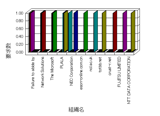 組織ユーザーにインターネット接続を提供する、商用または非営利団体、学術・行政機関などの、インターネット ドメイン で識別される団体や組織です。Microsoft Site Server Analysis は同じ組織に登録されたすべてのドメインを 1 つの組織としてグループ化します。ドメインがデータベースで使用できない場合は、1 つのインターネット ドメインが 1 つの組織を識別するのに使用されます。