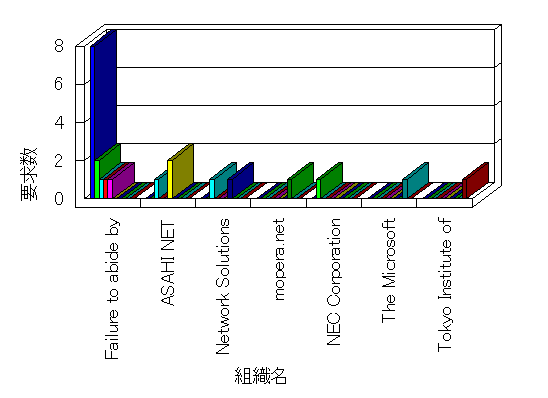組織ユーザーにインターネット接続を提供する、商用または非営利団体、学術・行政機関などの、インターネット ドメイン で識別される団体や組織です。Microsoft Site Server Analysis は同じ組織に登録されたすべてのドメインを 1 つの組織としてグループ化します。ドメインがデータベースで使用できない場合は、1 つのインターネット ドメインが 1 つの組織を識別するのに使用されます。