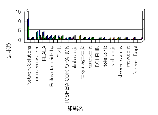組織ユーザーにインターネット接続を提供する、商用または非営利団体、学術・行政機関などの、インターネット ドメイン で識別される団体や組織です。Microsoft Site Server Analysis は同じ組織に登録されたすべてのドメインを 1 つの組織としてグループ化します。ドメインがデータベースで使用できない場合は、1 つのインターネット ドメインが 1 つの組織を識別するのに使用されます。