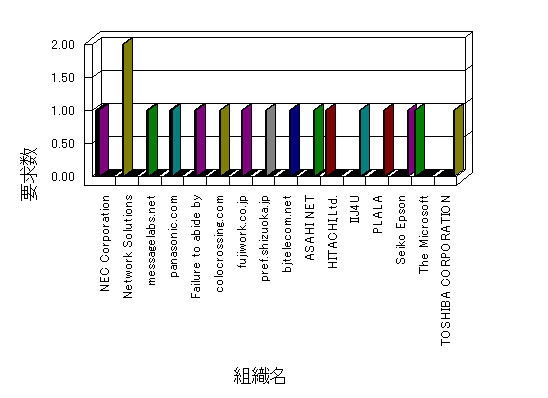 組織ユーザーにインターネット接続を提供する、商用または非営利団体、学術・行政機関などの、インターネット ドメイン で識別される団体や組織です。Microsoft Site Server Analysis は同じ組織に登録されたすべてのドメインを 1 つの組織としてグループ化します。ドメインがデータベースで使用できない場合は、1 つのインターネット ドメインが 1 つの組織を識別するのに使用されます。