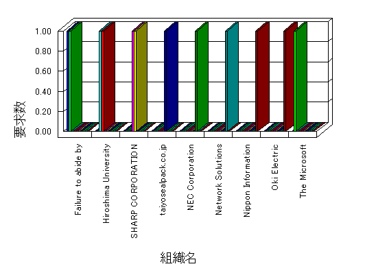 参照組織のサイトには、このサイトにリンクするページがあります。グラフでは、このサイトへのアクセス数に基づいた、上位 10 組織を示します。