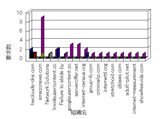 参照組織のサイトには、このサイトにリンクするページがあります。グラフでは、このサイトへのアクセス数に基づいた、上位 10 組織を示します。
